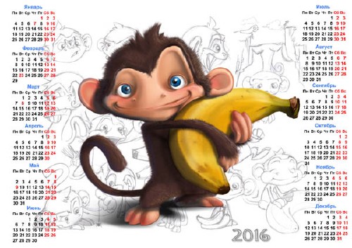 Календарная сетка - Маленькая обезьянка с бананом TIFF | 3000x2120 | 300 dpi | 12 мб Автор: Alexey84