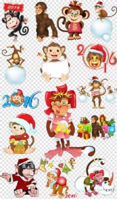 Клипарт- Новогодние обезьяны на прозрачном фоне PSD 1 | слои раздельно | max 5399 x 5399 | 400 dpi | 114.38 MB