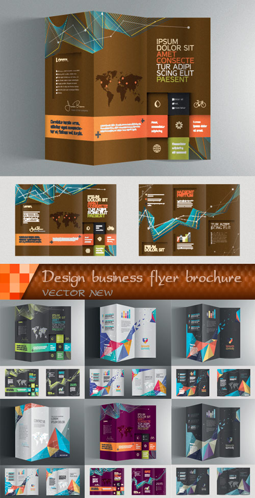 Векторные брошюры для бизнес проектов Красивый набор брошюр и флаеров на три страницы для творчества. EPS + JPG | 3000 x 3700 px | 7 шаблонов | 112 мб