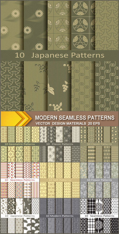 Векторные бесшовные узоры - разный стиль 20 EPS + JPG | 2500 x 2500 px | 20 наборов | 160 мб