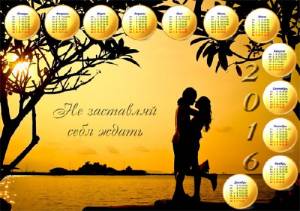 Красивый календарь - Целующиеся пара на закате PSD | 3000x2121 | 300 dpi | 25 мб Автор: Alexey84