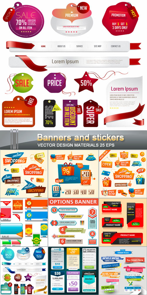 Векторные баннеры и стикеры 25 EPS + JPG | 1000 x 1000 px | 122 мб