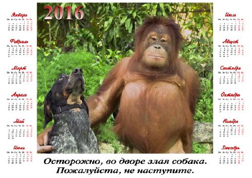 На 2016 год календарь - Собака и орангутанг TIFF | 3500x2480 | 300 dpi | 18 мб Автор: Alexey84