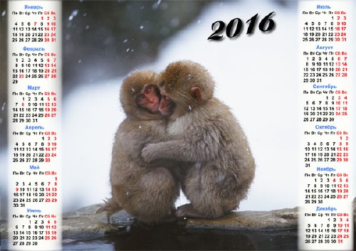 Календарь 2016 - Две обезьянки греются зимой TIFF | 3500x2480 | 300 dpi | 30 мб Автор: Alexey84