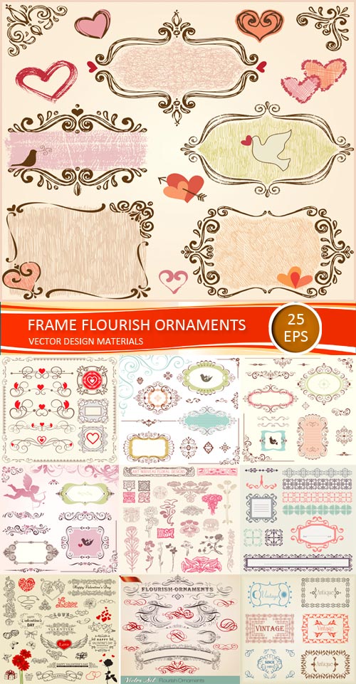 Винтажные рамки и узоры в векторе EPS + JPG | 3500 x 3500 px | 123 мб