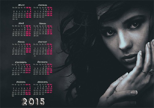 На 2015 год календарь - С девушкой PSD | 3000x2121 | 300 dpi | 27 мб Автор: Alexey84