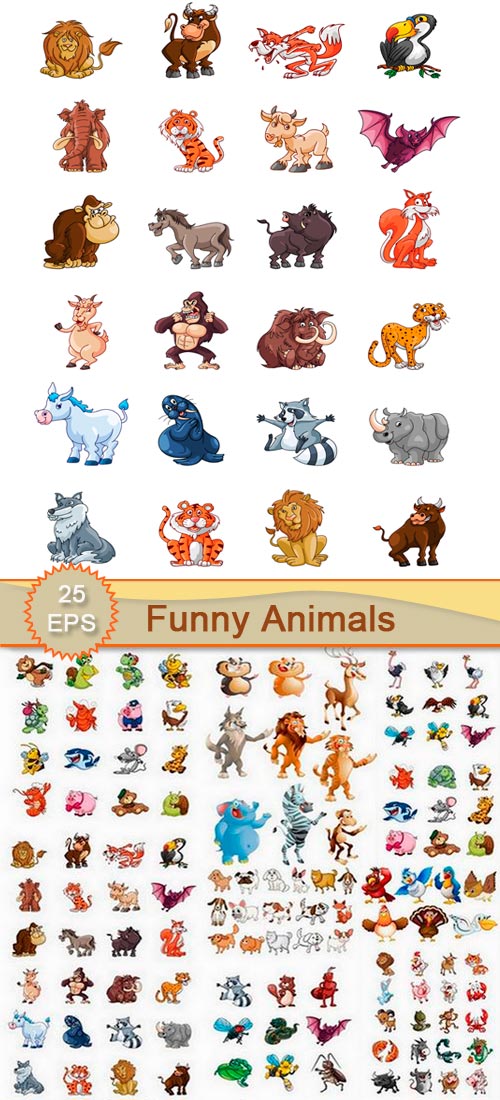 Клипарт - Смешные карикатуры животных EPS + JPG | 2350 x 2700 px | 132 МБ