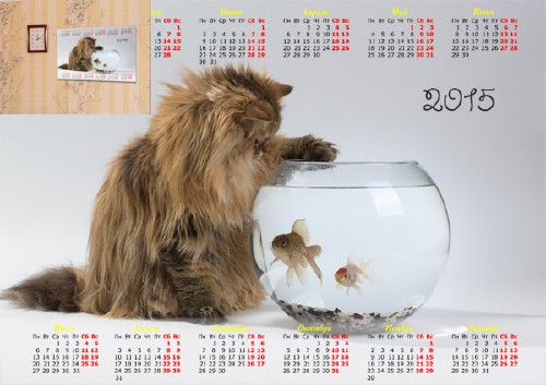 Календарь настенный - Котик и рыбки PSD | 3000x2120 | 300 dpi | 22 мб Автор: Alexey84