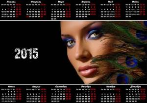 Девушка с перьями павлина - Календарь PSD | 3000x2120 | 300 dpi | 14 Мб Автор: Alexey84