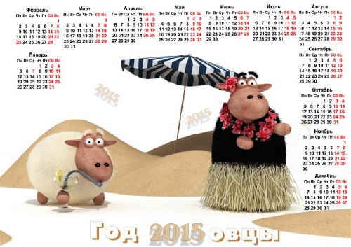 Овечки на отдыхе - На 2015 год календарь PSD | 3000x2121 | 300 dpi | 15 Мб Автор: Alexey84