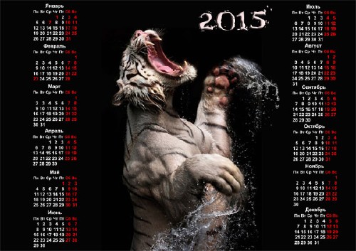 Календарь - Рычание тигра PSD | 3500x2480 | 300 dpi | 17 мб Автор: Alexey84