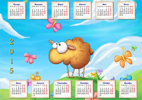 Календарь настенный - Забавная овечка на полянке PSD | 3000x2121 | 300 dpi | 23 мб Автор: Alexey84