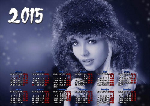 Календарь на 2015 год - Девушка зимой PSD | 3000x2121 | 300 dpi | 26 мб Автор: Alexey84