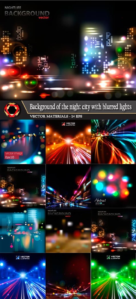 Векторные фоны ночного города с размытыми огнями EPS + JPG | 2990 x 2990 px | 14 фонов | 127 мб