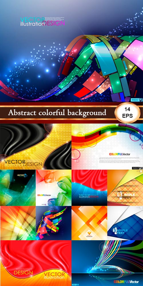 Абстрактные красочные фоны Красивый набор разноцветных абстрактных фонов для творчества. EPS + JPG | 4300 x 3200 px | 14 фонов | 283 мб