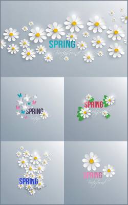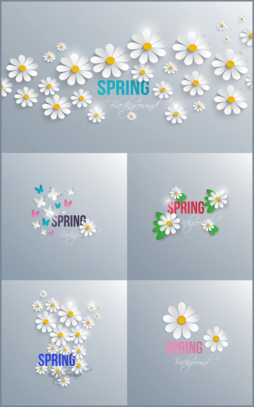 Белые фоны с ромашками в векторе EPS + JPG | 5000 x 5000 px | 5 фонов | 54 мб