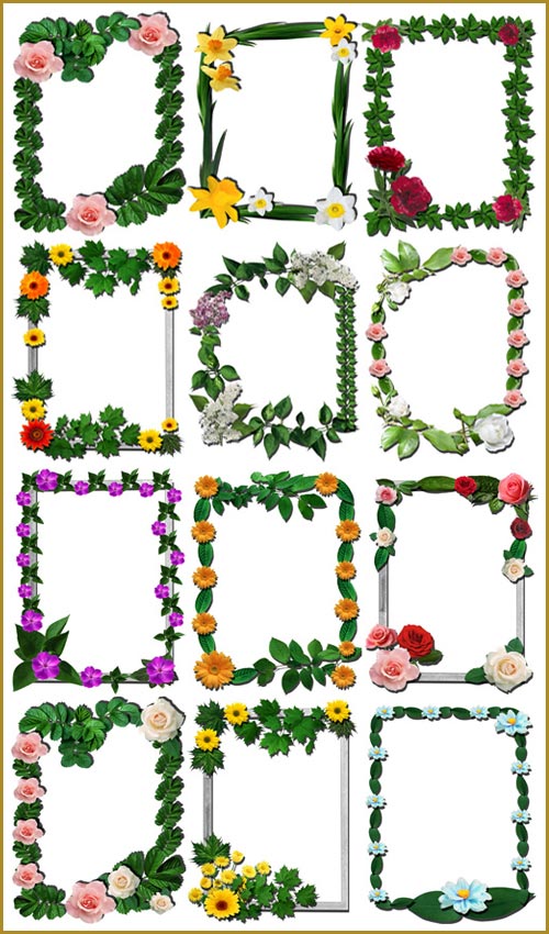 Цветочные рамки вырезы для фотошопа PNG | 2480 x 3500 px | 18 рамок | 104 мб