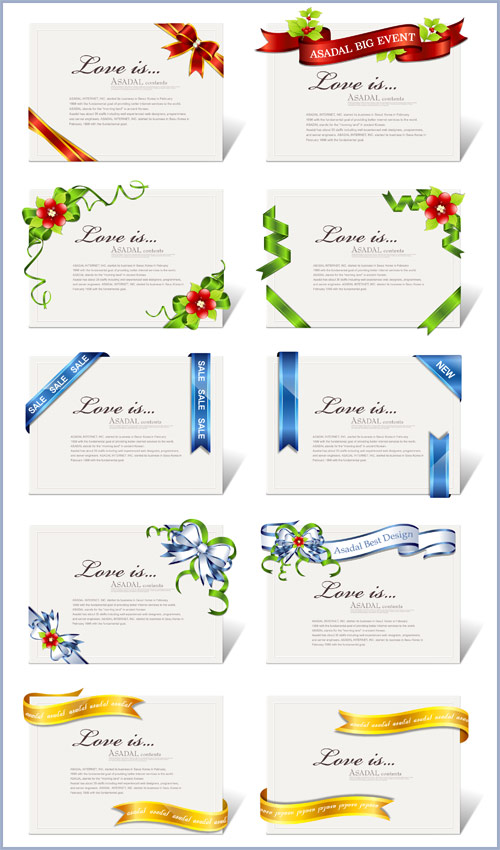 Векторные фоны с лентами для приглашений EPS + AI | 10 фонов | 51 мб