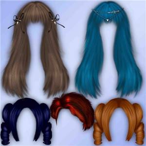 Клипарт для фотомонтажа – Прически аниме PSD | 4000x4000 | 300 dpi | 135 Мб Количество: 5 причесок Автор подборки: эрагон