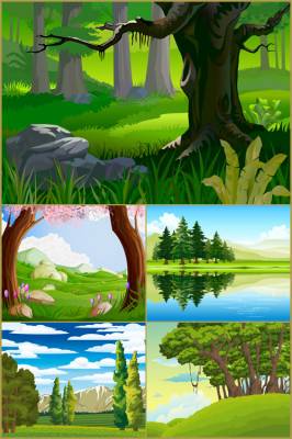 Лесные пейзажи векторные фоны EPS + JPG | 3000 x 2100 px | 6 фонов | 55 мб