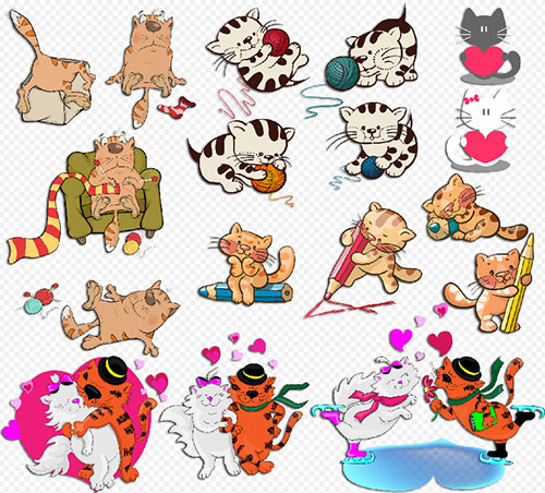 Клипарт- Влюблённые кошки котята с клубками на прозрачном фоне PSD 1 | слои раздельно | max 15628 x 14080 | 3000 dpi | 73.76 MB