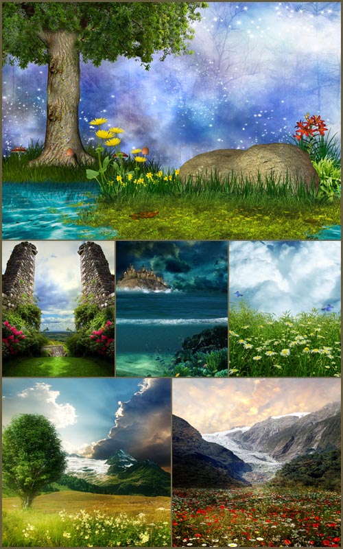Фоны для фотошопа - Сказочный пейзаж 9 Очень красивые сказочные фоны в большом разрешении, для творчества JPG | 3500 x 4000 px | 12 фонов | 83 мб