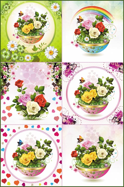 Изящные и неповторимые розы - Векторные фоны EPS + JPG | 1500 x 1500 px| 6 фонов | 53 мб