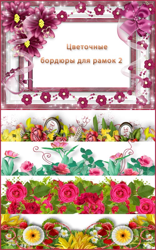 Клипарт png - Цветочные бордюры для рамок 2 PNG | max 3600 x 1000 px | 38 элементов | 115 мб