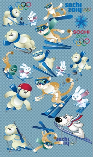 Клипарт - Олимпиада в Сочи 2014 олимпийские талисманы на прозрачном фоне PSD 1 | слои раздельно | max 4998 x 8460 | 300 dpi | 80.67 MB
