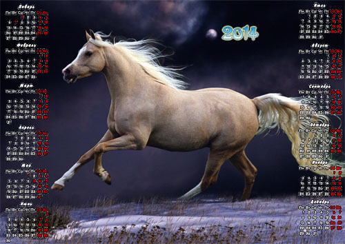 Календарь на 2014 год - Игривые кони PSD | 3000x2120 | 300 dpi | 27 мб Автор: Alexey84