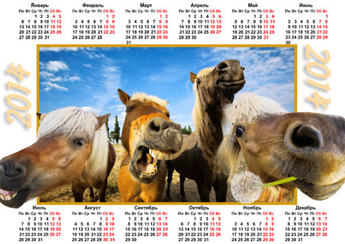 Календарь на 2014 год - Улыбающиеся четыре коня PSD | 3000x2120 | 300 dpi | 21 мб Автор: Alexey84