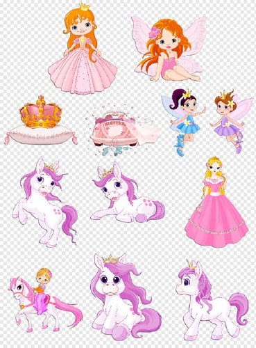 Клипарт - Принцесса и пони с золотой короной на прозрачном фоне PSD 1 | слои раздельно | max 4998 x 6098 | 300 dpi | 53.19 MB